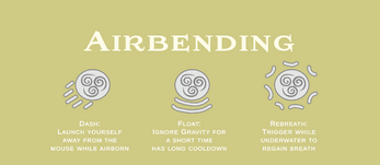 A 2D Platformer inspired by Avatar the Last Airbender where the player must learn how to control all 4 elements, mixing and matching abilities to beat levels in a variety of ways.